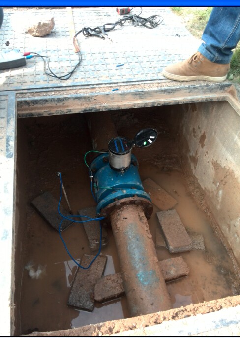城鄉(xiāng)一體化供水計(jì)量電池供電電磁流量計(jì)安裝現(xiàn)場