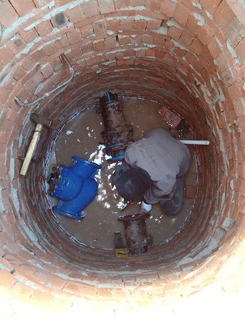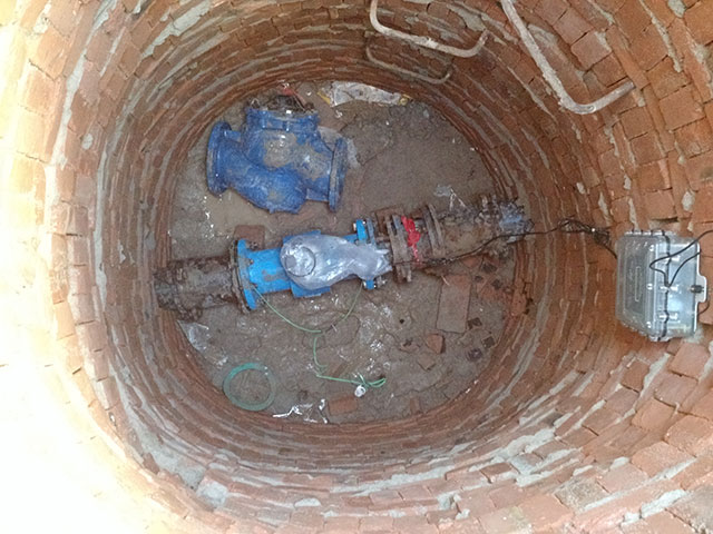 電池電磁流量計替換大口徑機(jī)械式水表安裝現(xiàn)場